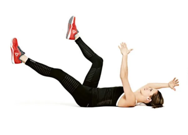 Srovnejte záda s podložkou, krční páteř je v prodloužení a hlava není v záklonu. Ramena a lopatky držte stažené směrem k hýždím. Vytáhněte kolena nad kyčle (pokud cítíte přetížení v bedrech, kolena lehce přitáhněte směrem k sobě). Vzdálenost pat je menší než vzdálenost kolen. S výdechem natahujte levou ruku a zároveň pravou nohu, s nádechem se vraťte do základní pozice a střídejte strany.