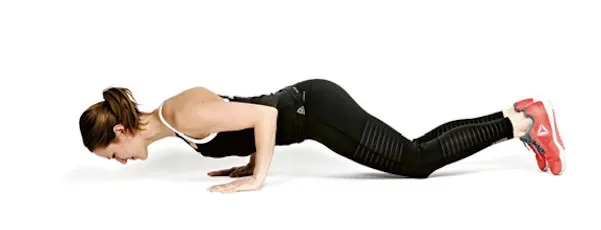 Od kolen až po temeno hlavy vytvořte přímku, paže jsou natažené pod rameny. Vyplňte prostor mezi lopatkami a stáhněte je směrem k hýždím. Hrudní kost vytahujte dopředu a nahoru. S výdechem začněte krčit lokty podél těla směrem dozadu a nenechejte paže otevřít do strany. Tělo snižujte jen tam, odkud se budete schopni bez prohnutí v zádech, odchlípnutí paží a přílišného napětí a úsilí vrátit zpět. S nádechem se vzepřete vzhůru do výchozí pozice – celou dobu vnímejte délku těla od kříže k zátylku a od stydké kosti směrem k bradě.