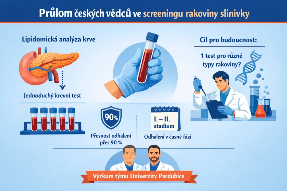 Právě v oblasti screeningu rakoviny slinivky přinesli světu významný objev čeští vědci z Pardubic. Vyvinuli metodu lipidomické analýzy, která dokáže nemoc odhalit z běžného krevního odběru s přesností přes 90 %.