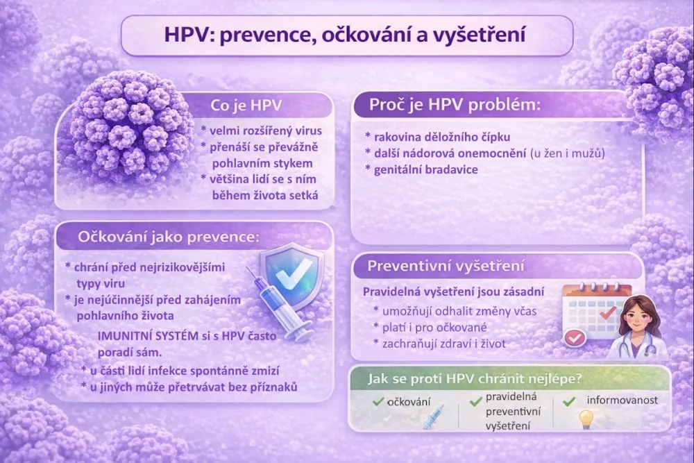 Některé typy HPV způsobují vznik rakoviny děložního čípku, genitálních bradavic, ale také s nádory konečníku, genitálií nebo oblasti hlavy a krku. Právě proto hraje prevence u HPV zásadní roli.