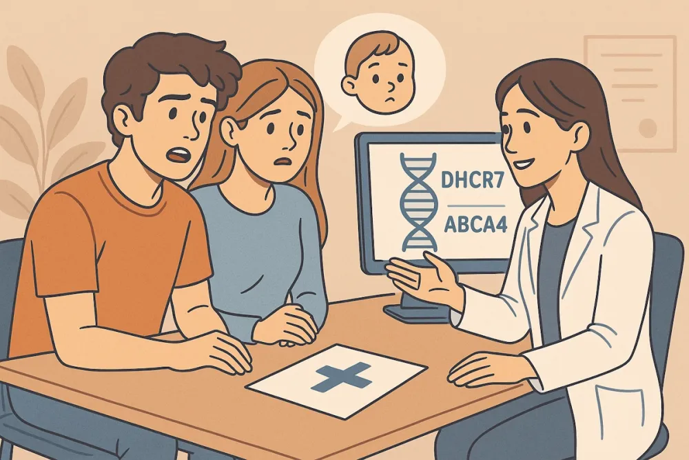Mladá zdravá žena si nechala udělat test preventivně. Ukázalo se, že je přenašečkou mutací v genech DHCR7 a ABCA4. První z nich souvisí s tzv. Smith-Lemli-Opitzovým syndromem, který se může projevovat různě – od lehkých vývojových vad až po těžké případy neslučitelné se životem. Druhý gen je spojený se Stargardtovou chorobou, což je dědičné oční onemocnění způsobující postupnou ztrátu centrálního vidění.