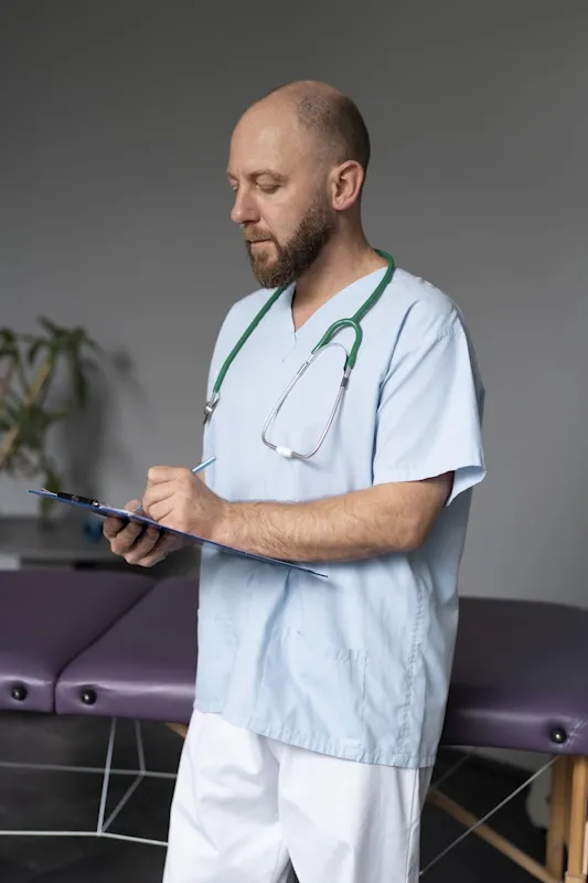 Vysvětlení důležitosti, smyslu a významu vyšetření a odeslání muže se žádankou na odběr krve do laboratoře pro stanovení celkového PSA (prostatický antigen).