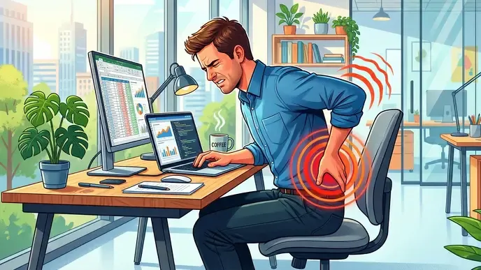 Dlouhé sezení bez přerušení zatěžuje metabolismus, páteř i psychiku. | Zdroj: OZP AIProč dlouhé sezení škodí